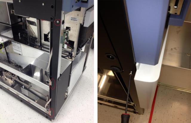 Place the Fusion waste cover onto the Fusion. Secure the cover using five 3mm screws (taped to the back of the cover) and washers.