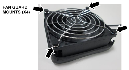 Remove and save the fan guards and any mounting hardware from the old fans. (Old fans only have one fan guard, not one on both sides.) Discard the old fans.