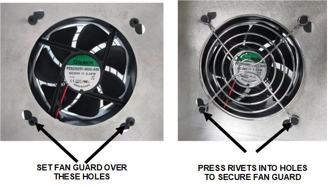 Install the second Fan Guard on the inside of the fan duct using the 4 Fan Guard plastic Rivets.