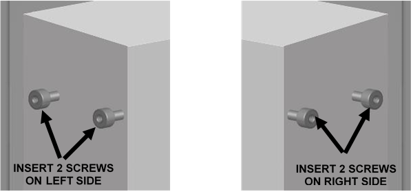 Insert 2 M4x8 screws provided in the kit on each side of the power supply, into the pre-existing, empty holes near the top of each side. Do not tighten, leave space to slide in the new fan duct.
