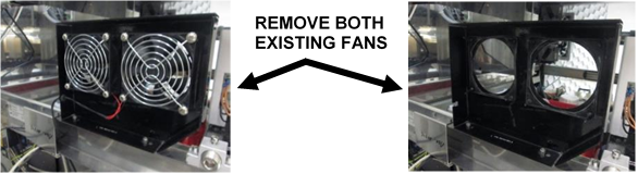 - Replace the 2 existing fans with two new ones from the kit.