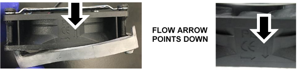 Caution—Verify they are installed on the correct side of the fan, with the flow arrow pointing as shown.
