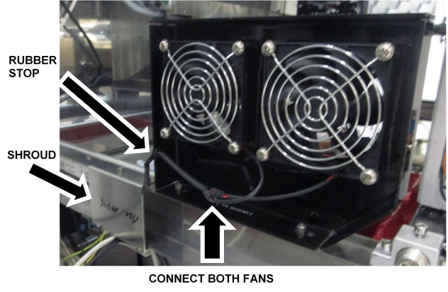 Ensure all the 24V power cables are routed through the angled cutout in the side of the fan duct.