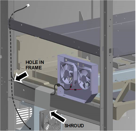 NOTE—On most systems, there is a group of cables that runs down the side of the frame that needs to be gently moved out of the way to install the fan duct.