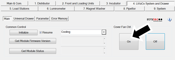 - Under the 4. LiVaCo System and Drawer tab, initialize the Cooling System.