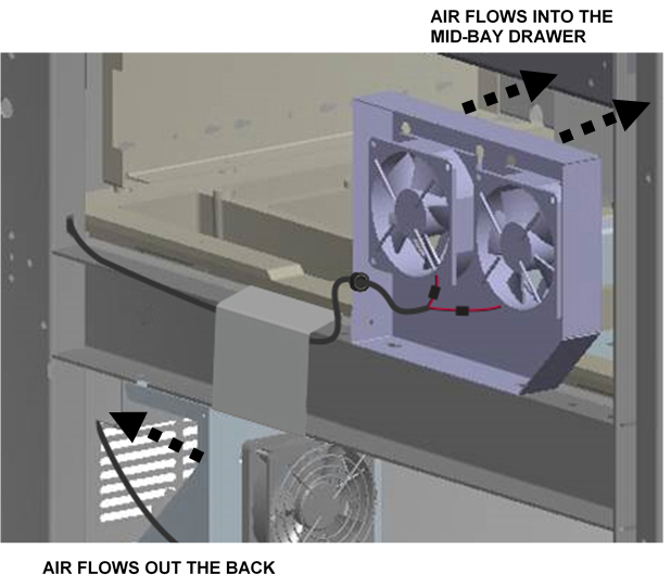 Locate the existing dual chassis fan assembly above the Computer Bay.