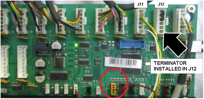 After connecting the Fusion connector into Slot 11 (J11), install the terminator into Slot 12 (J12).