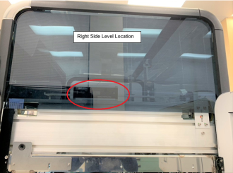 - Final check for leveling the instrument is to ensure the TCR Door opens and closes smoothly, without contact with the front cover.