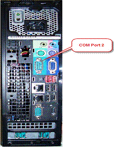 At the back of the PC, connect the RS232 cable to COM Port 1 or Com Port 2.