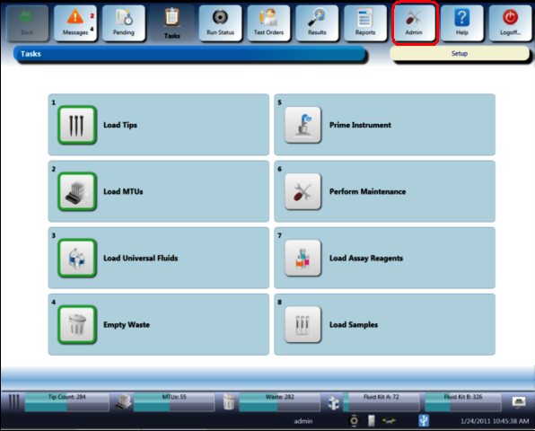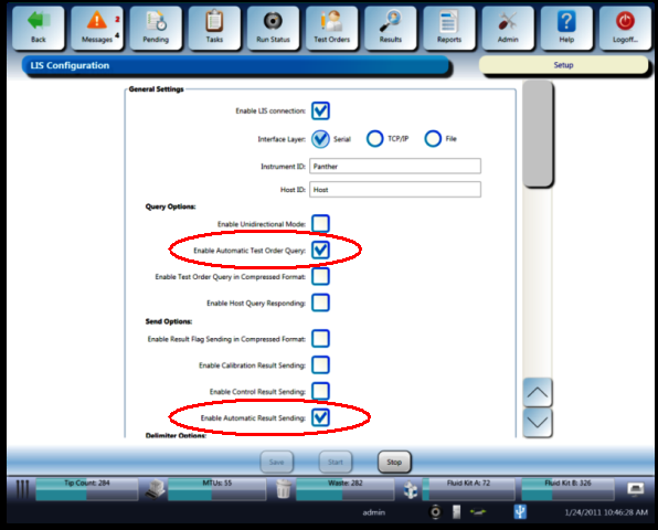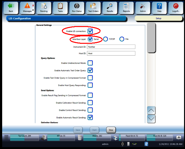 - In the Panther System software, navigate to Admin> LIS Configuration.