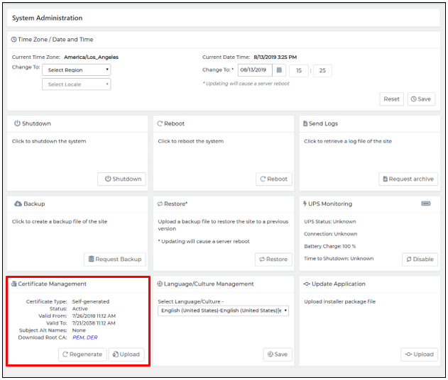 - Navigate to the Dashboard Command System Administration screen and locate Certificate Management.