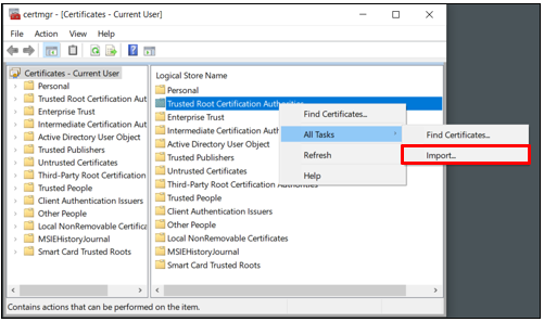- Deploy using site's institution certificate management system (i.e. active directory, group policy, etc.).