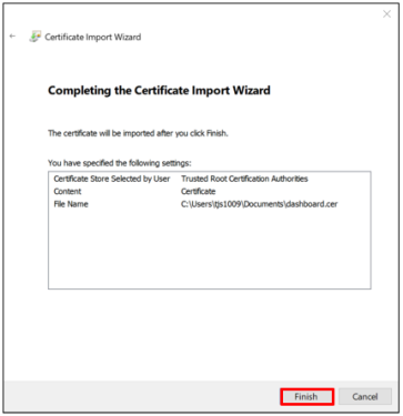 Note—Installation of self-generated root CA is required for proper Dashboard operation. |