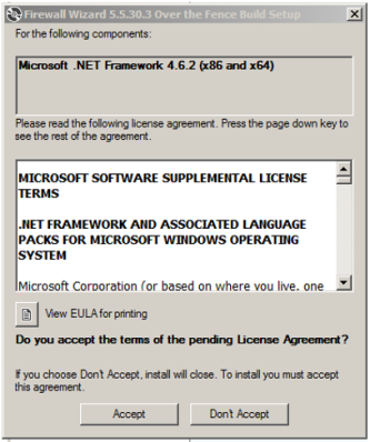 A pop-up may occur to install Microsoft .NET Framework 4.6.2 (x86 and x64).