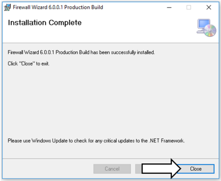 - Click Close to exit the Firewall Wizard installation.