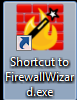 Verify that there is an icon on your desktop labeled Shortcut to FirewallWizard.exe.
