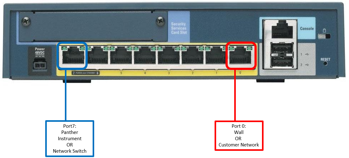 - If only ONE Panther is being networked, connect Port 7 of the Cisco ASA 5505 Firewall to the Ethernet Port of the Panther PC