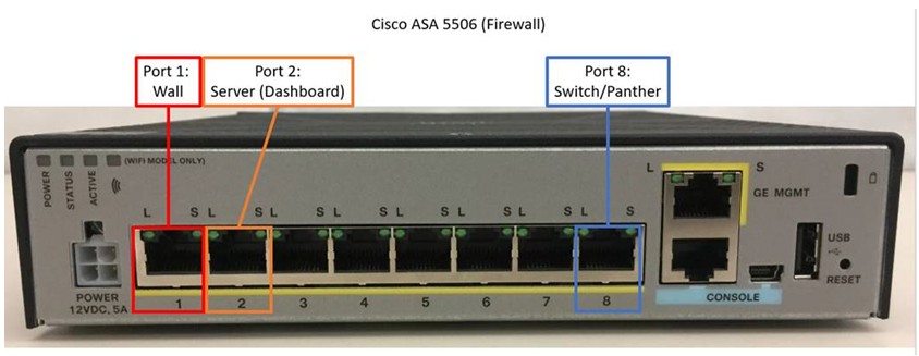 - If only ONE Panther is being networked, connect Port 8 of the Cisco ASA 5506 Firewall to the Ethernet Port of the Panther PC