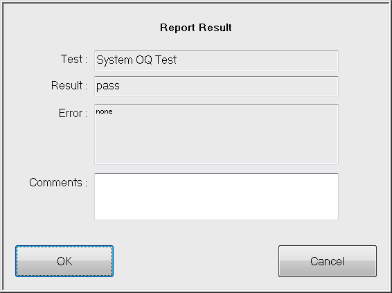 When the OQ test finishes, a report of the results appears on the screen.- Enter any useful information in theCommentsfield.
