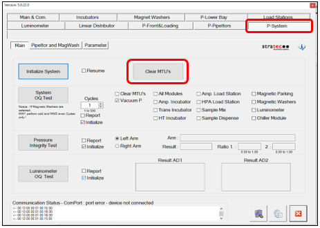 If needed, select the Clear MTUs checkbox. This instructs the system to check for any MTUs that may be present in any of the system's modules.