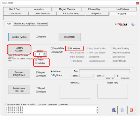 - Select 2 under Cycles. This indicates two full OQ cycles. Additional cycles can be run if needed.