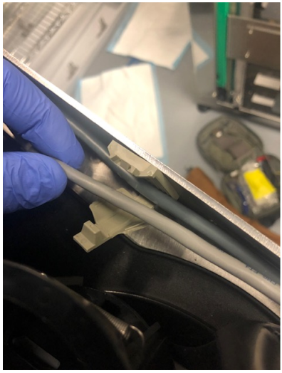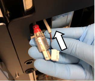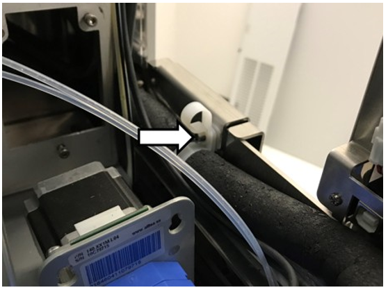 Remove the tube harness by collapsing the tabs and pushing down on the clip.