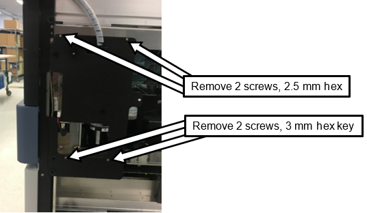 Note—If the Input Queue will be returned, decontaminate and complete Decon/OBF/RMA Form [19-02-APX-A]. Save the front and back mounting screws for installation of the MTU Queue in later steps.