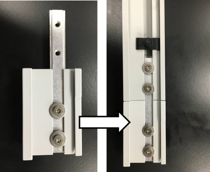 Attach the L-bracket with the short-end pointing up, as shown below, using the included 2 screws and 2 washers.