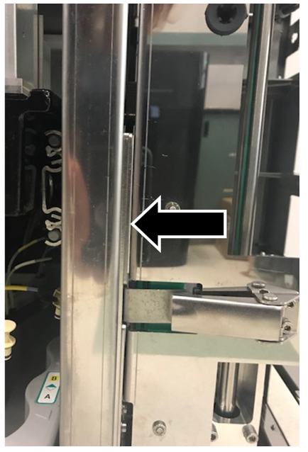 - Slightly lift the carrier platform so that the alignment pin is in the MTU Queue teach tool.