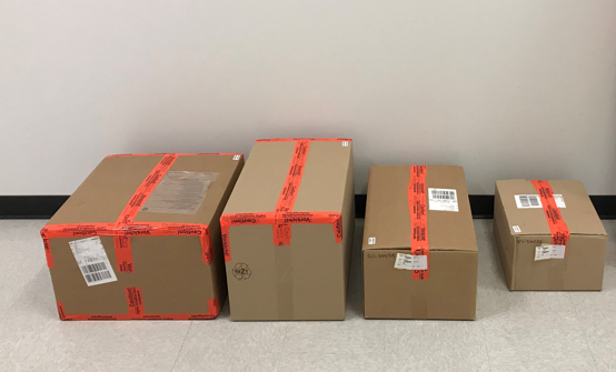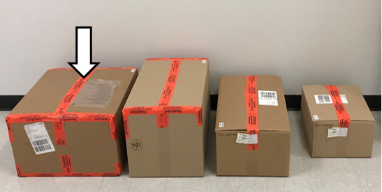 - Cut the restraining straps and set the largest box aside.