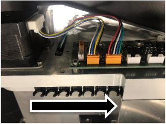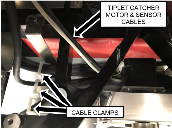 Secure the Tiplet Catcher motor and sensor cables through the cable clamp on the tip carousel.