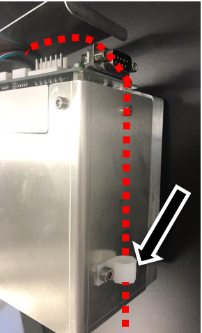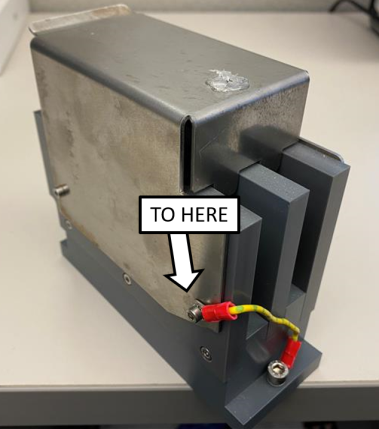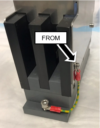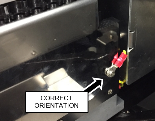 Move the grounding wire of the Magnetic Parking Station from the right side of the module (when viewed from the rear) to the left side of the module using the existing screws. The lug barrel must be oriented as shown below to maintain clearance with the Mag Wash when the service drawer is closed.