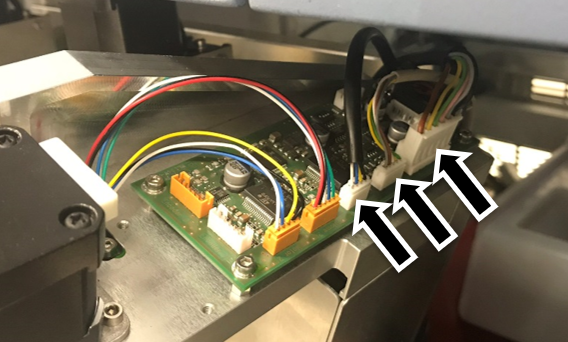 Connect the CAN cable, motor cable, and sensor cable to the Tip Carousel PCB.