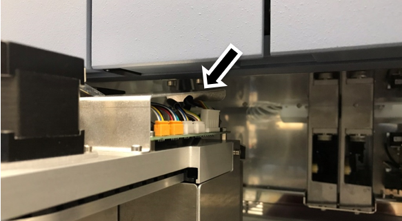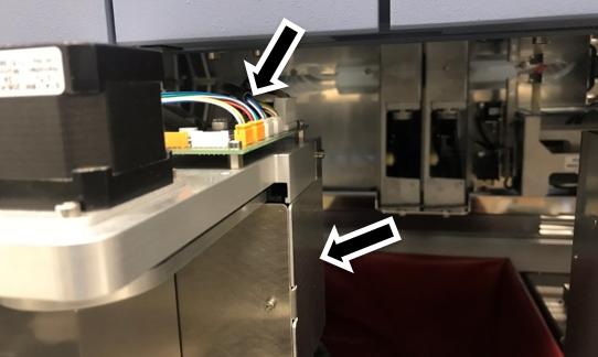 Note— Ensure that the Tiplet catcher motor and sensor cables are to the left of the CAN cable. - Secure the Tip Carousel to the drawer frame using the screws from the Tip Chute.
