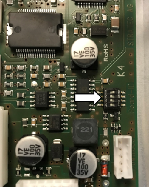 Ensure the cables do not protrude too high above the PCBA (arrow in figure below).