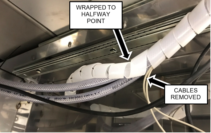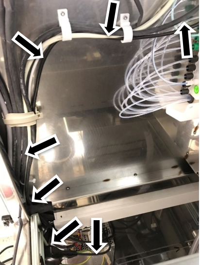 Route the branches of the cables behind the drawer and position the cable behind the vacuum tubing as shown.