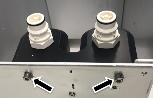 Remove the Waste Bottle Coupling Block with a 4 mm Allen key.