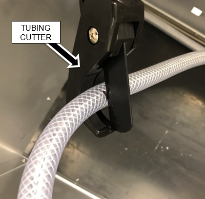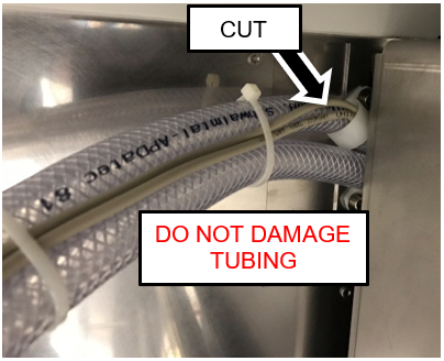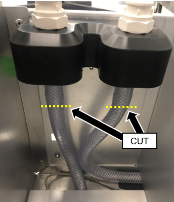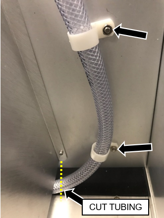 Cut the vacuum line tubing near the dividing wall, as shown below.