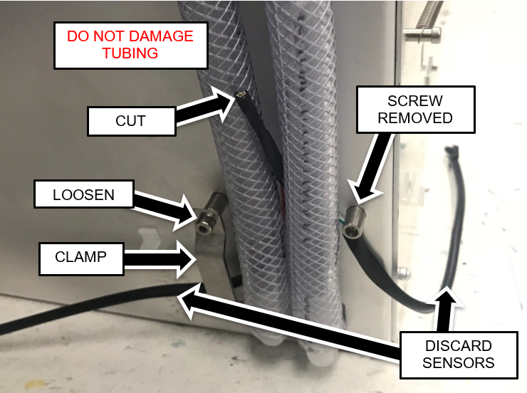 Caution—Be careful to maintain the original positions of the tubing. - Remove the remaining section of sensor cables.