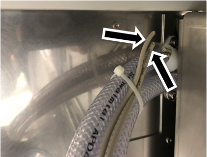 Insert the Waste Line tubing back into the drawer biased to the right side (when viewed from the rear).