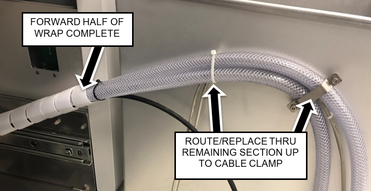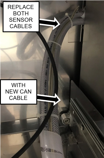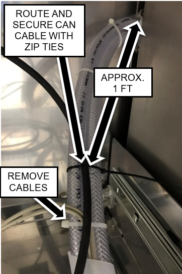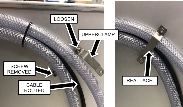 Route the new CAN cable behind and between the tubing and reattach the tubing clamp.