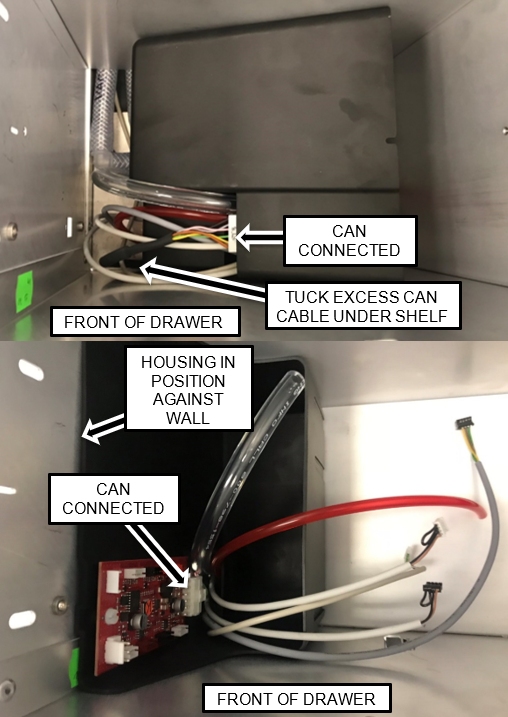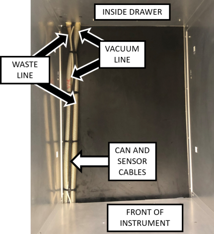 Route the CAN cable through the opening in the drawer to the right of the vacuum tubing.