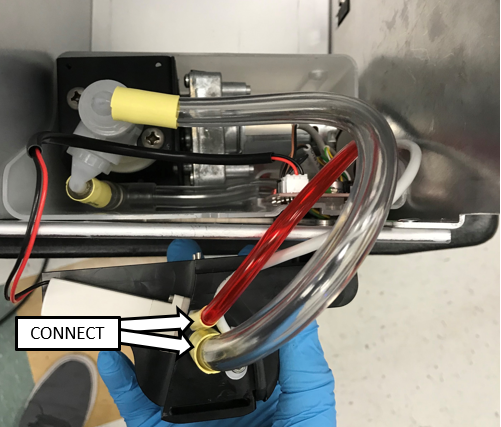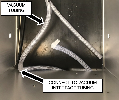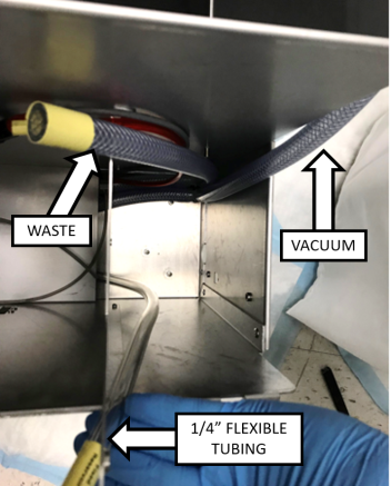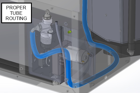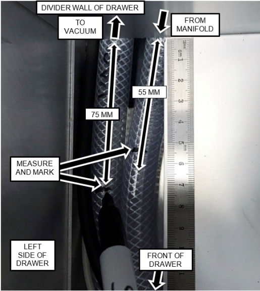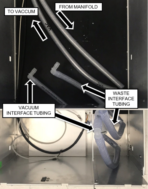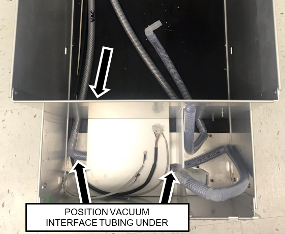 Inside the Waste Drawer, crisscross the vacuum tubing over the waste tubing as shown in the image below.