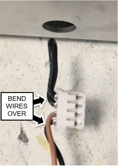 Prepare the Bottle Full and Empty Sensor Assembly to be installed by bending the wires at the connector as shown.