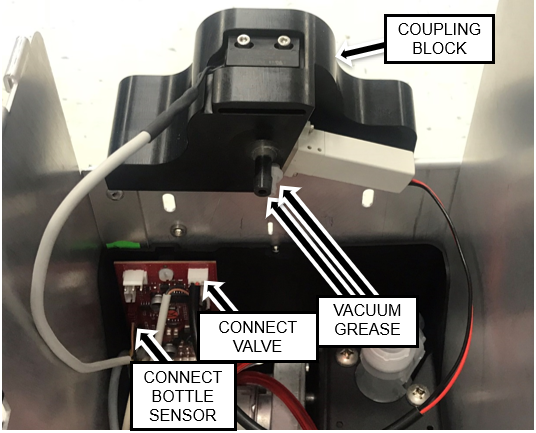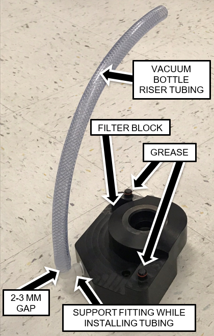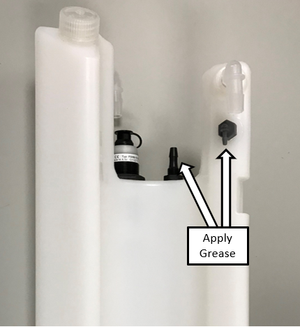 - Apply vacuum grease to both the large barbed fittings on the outside of the fixed/permanent vacuum bottle.