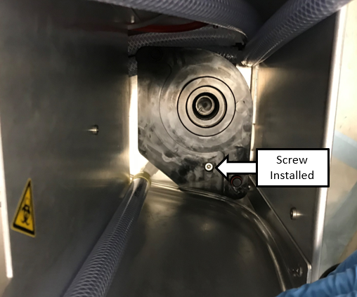 - Remove and retain one of the screws securing the upper tubing clamp.