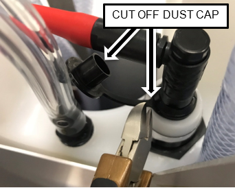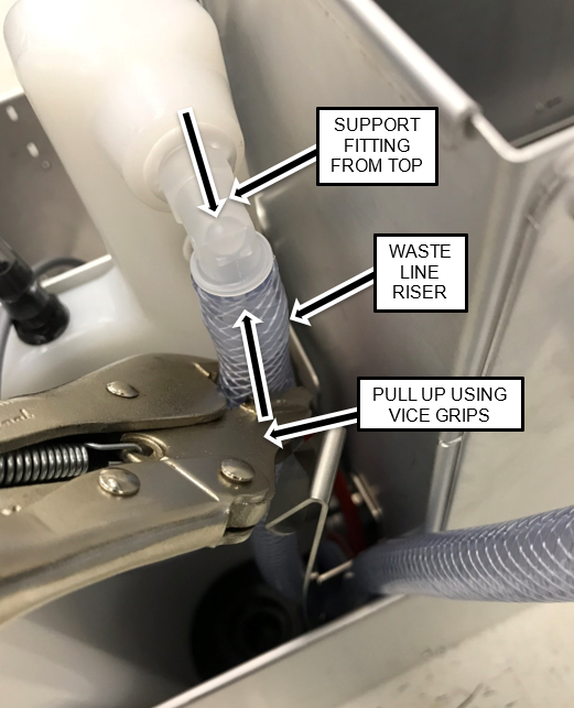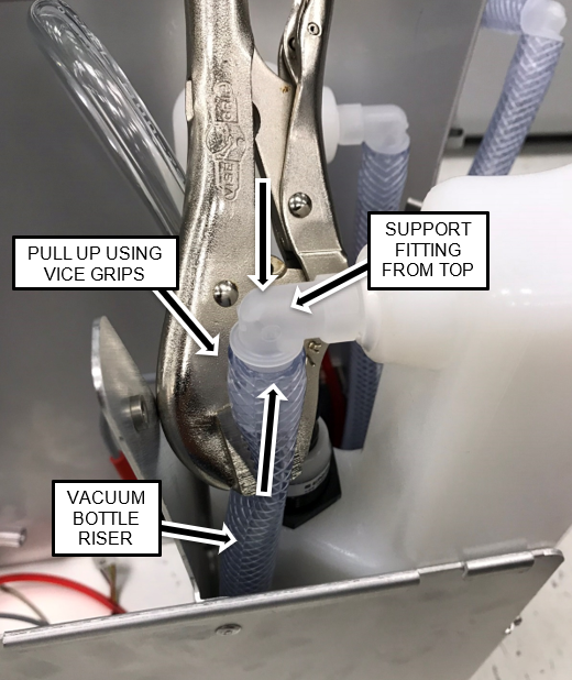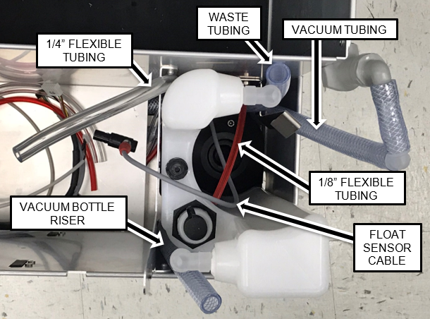 Install the Vacuum Bottle Riser and Waste Bottle Line Riser onto their respective fittings.