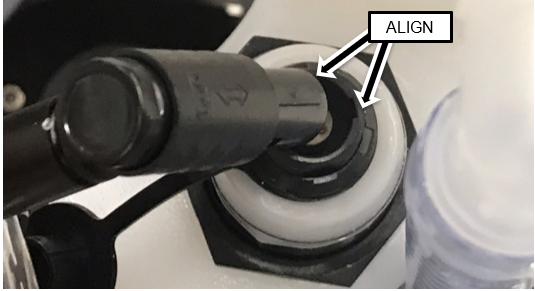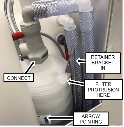 The retainer bracket will be above the top surface of the filter when the filter is fully seated.- Connect the Quick-connect on the Vacuum Interface tubing to the top of the Vacuum Filter.