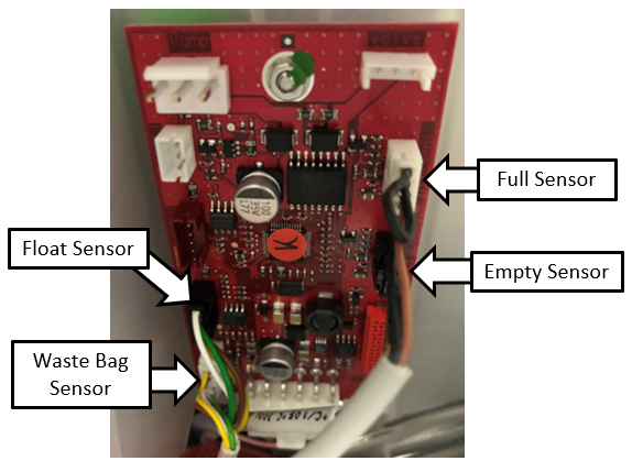 Disconnect the waste bag and bottle sensors from the Cooling Module PCB.