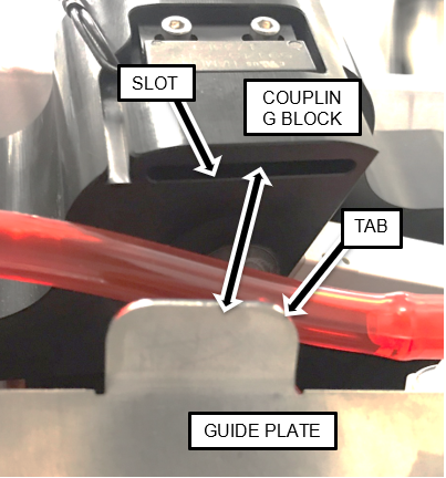 Cut the two pieces of vacuum tubing just below the Waste Bottle Coupling Block fittings with a tubing cutter. Discard the Coupling Block.